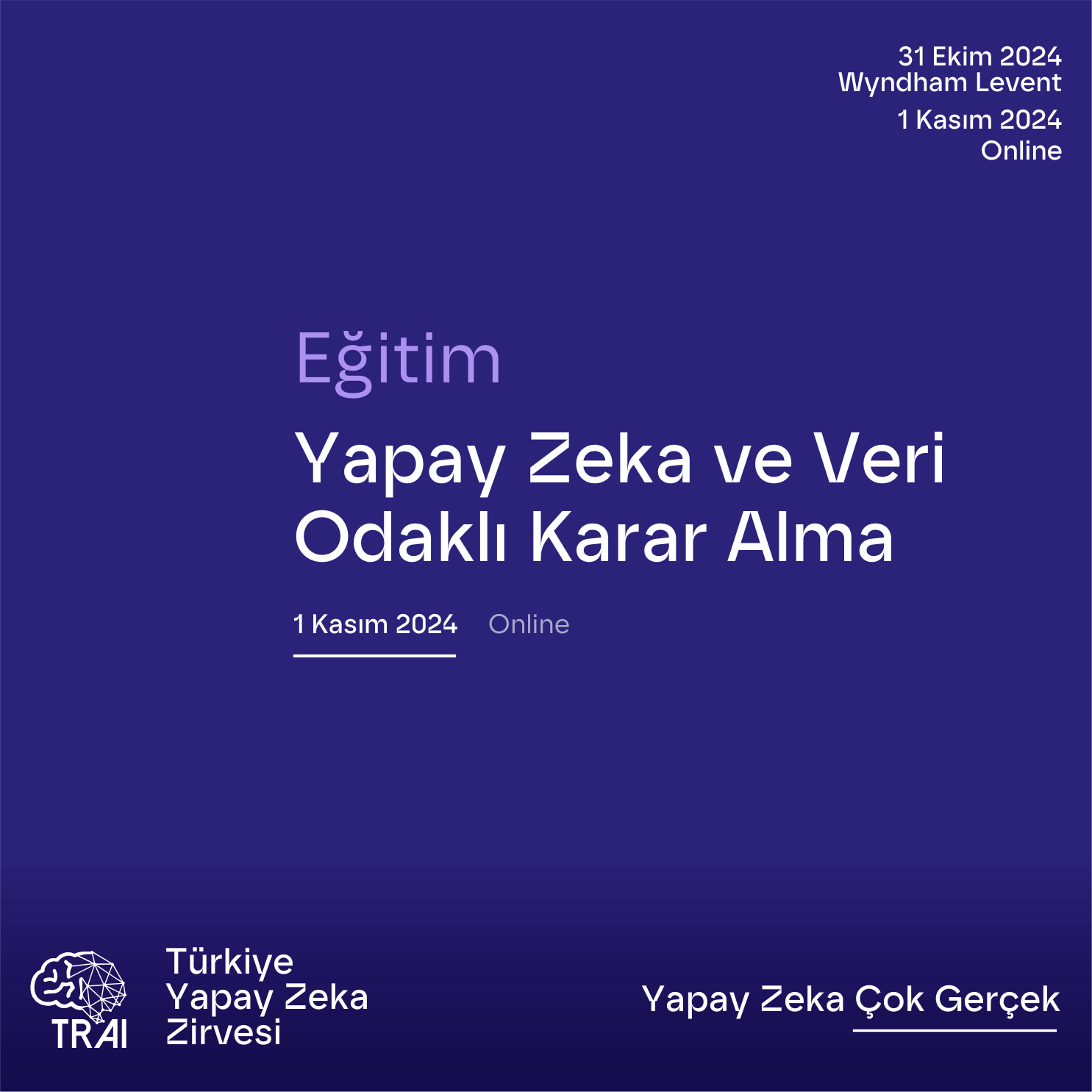 Yedi yıldır kesintisiz düzenlediğmiz Türkiye Yapay Zeka Zirvesi, bu yıl “Yapay Zeka Çok Gerçek” teması ile 31 Ekim’de Wyndham Grand İstanbul Levent’te gerçekleşti. Zirve sektörün önde gelen isimlerinin ilham verici sunumlarına, panellerine ve yapay zeka eğitimlerine ev sahipliği yaptı. TRAI Kurucusu Halil Aksu, yaptığı açılış konuşmasında yapay zekanın artık sadece bir kavram olmadığını, somut etkiler yaratan bir gerçeklik olduğuna dikkat çekti. Yoğun ilgi gören Zirve’ye 280 kurum ve 1300 kişi katıldı. Etkinliğin ikinci gününü ise 1 Kasım’da online olarak gerçekleşti.